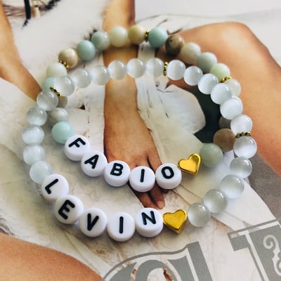 Personalisiere dein Armband mit Namen, Initialen oder mit einem persönlichen Wort dass dir etwas bedeutet. Suche dir einen Stein aus der dir gefällt und dich erst noch stärkt.